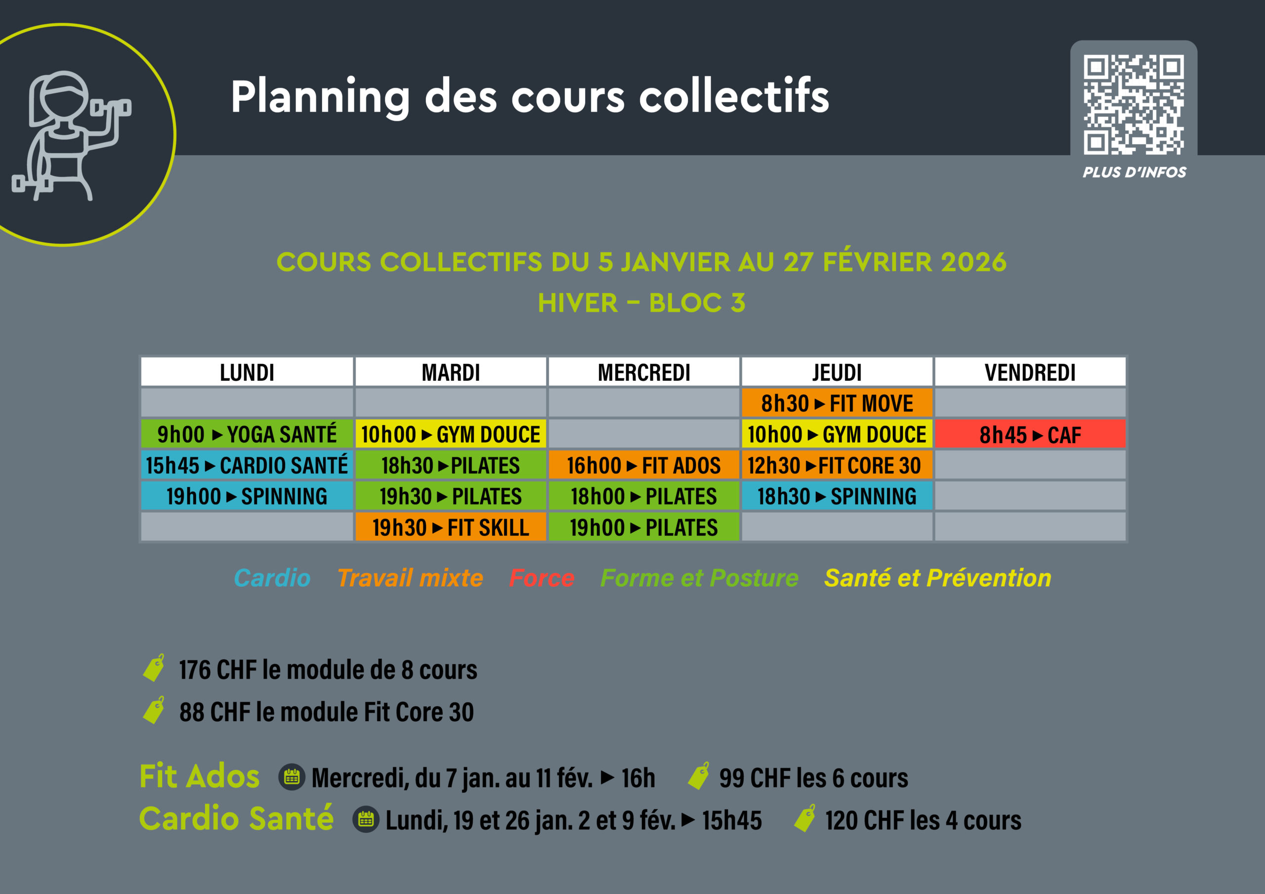 Bloc 3 de cours collectifs dès le 5 janvier